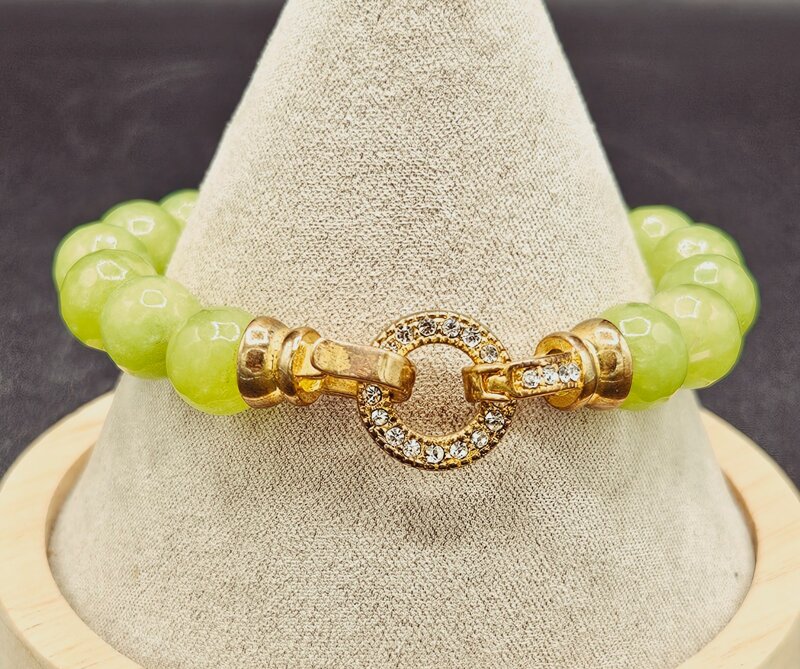 Bracciale elasticizzato in pietra dura colore lime dorato e strass