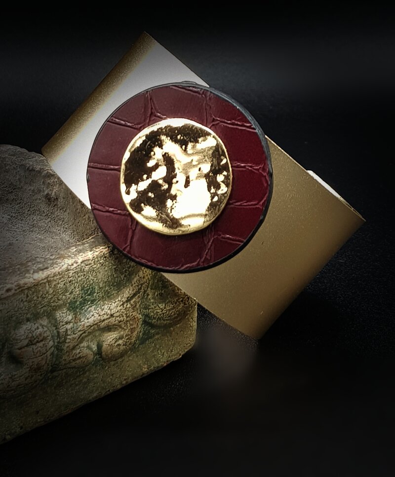 bracciale alto rigido oro satinato con inserto di similpelle colore bordeaux pezzo unico