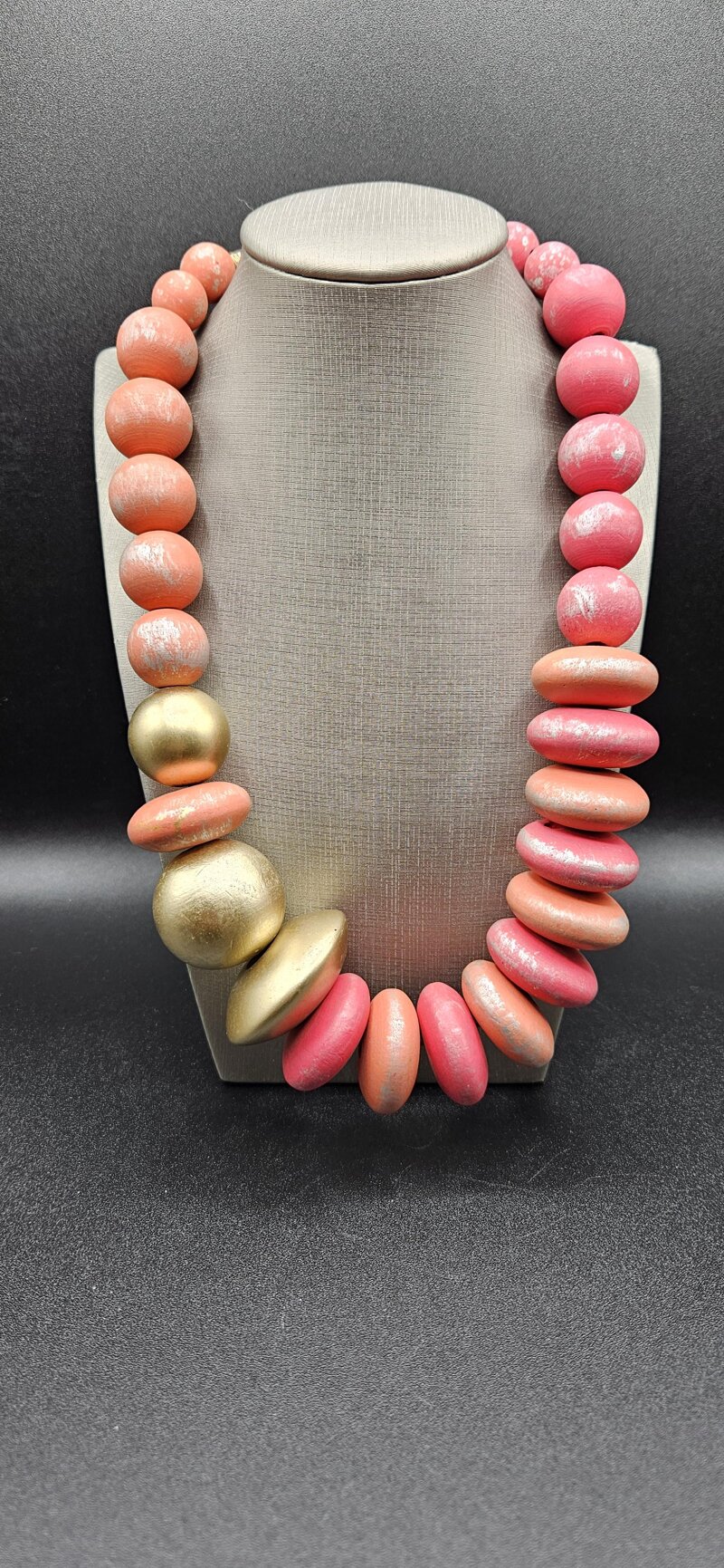 Collanacon elementi di legno nel colore rosa e oro