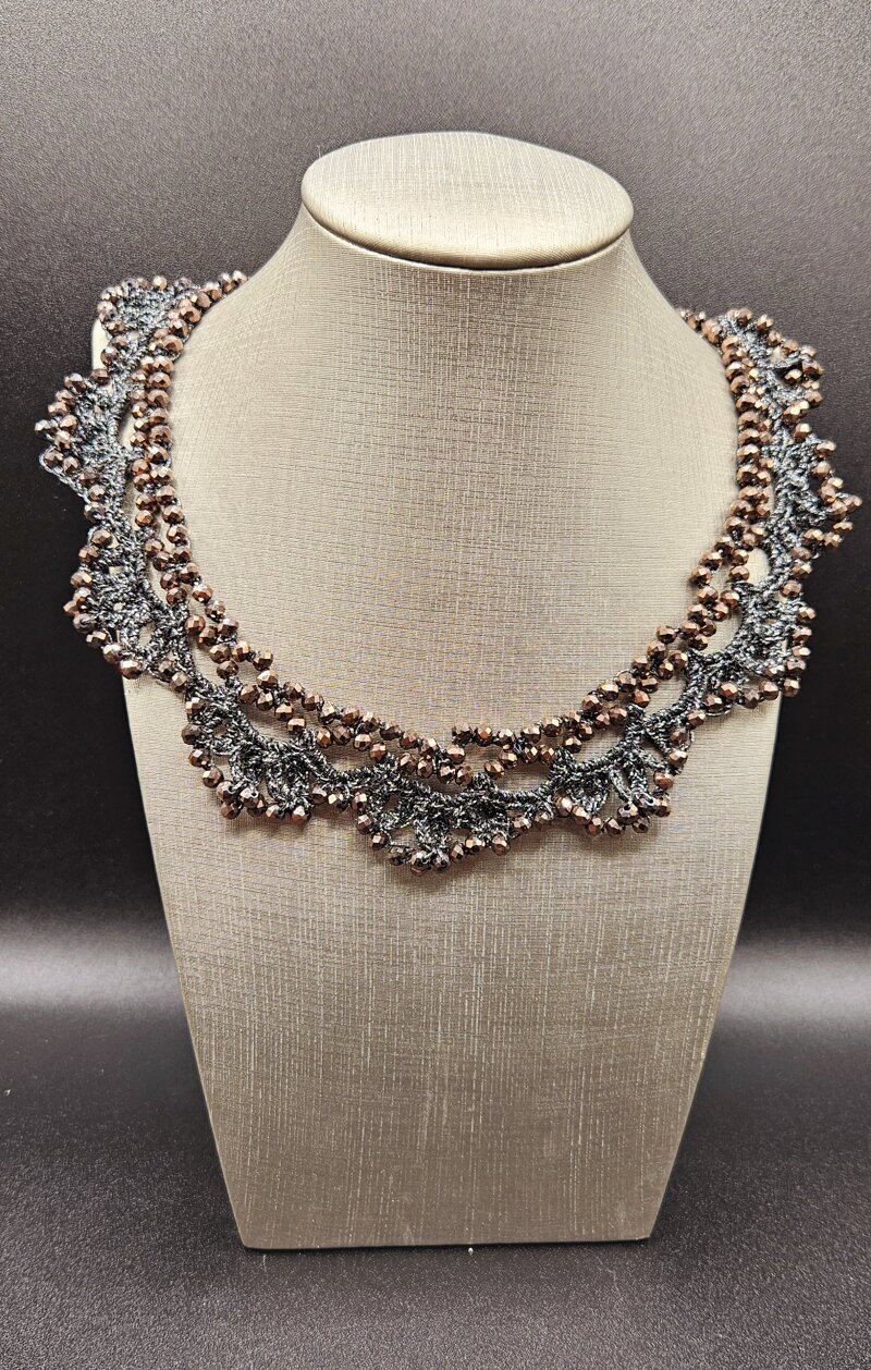Girocolloin uncinetto colore ematite e bronzo con chiusura a magnete
