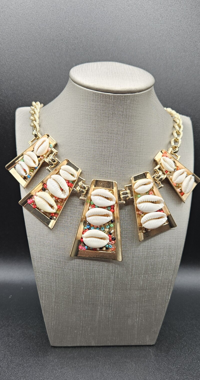 Collanadorata con conchiglie e perline multicolore