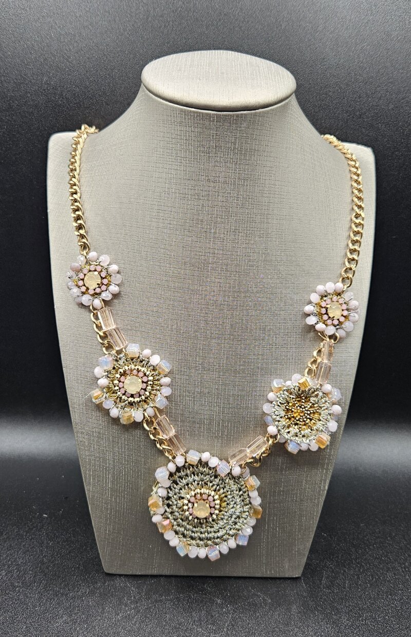 Collanadorata con uncinetto rosa e oro
