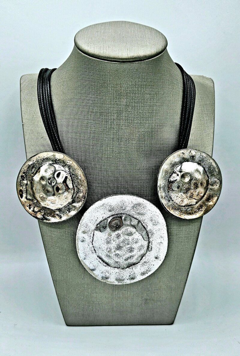 Collanacordino nero con applicazioni argento e sfumature rose