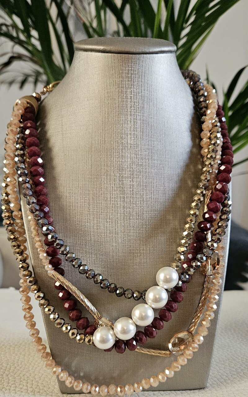 Collanacon perle sfaccettate e perle nel colore bronzo, marrone e beige